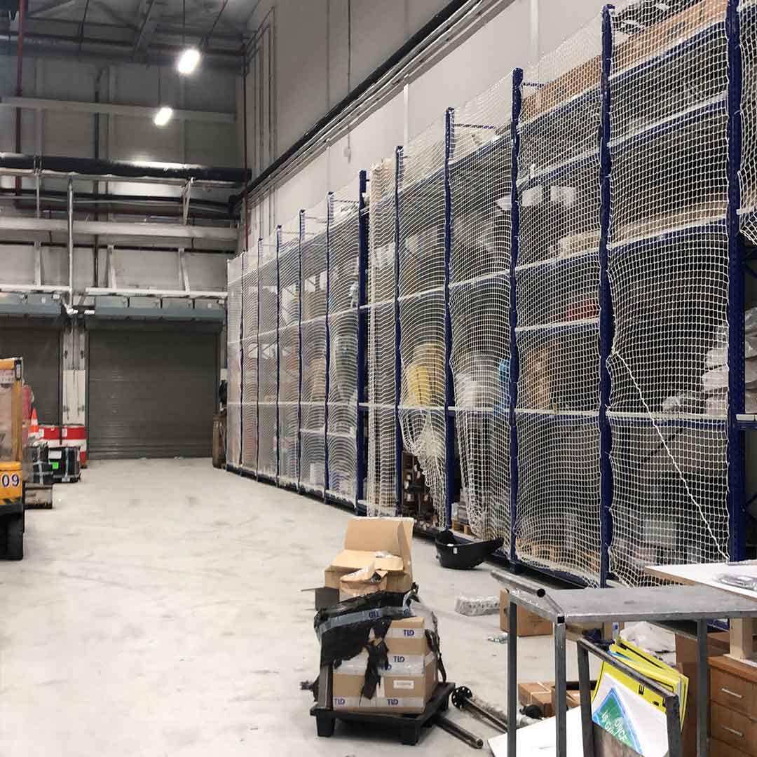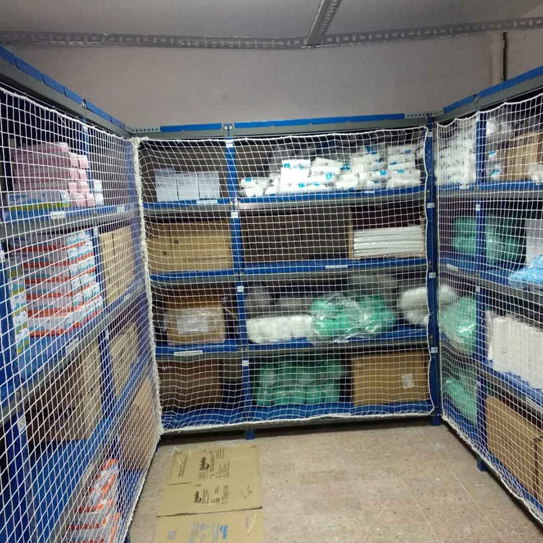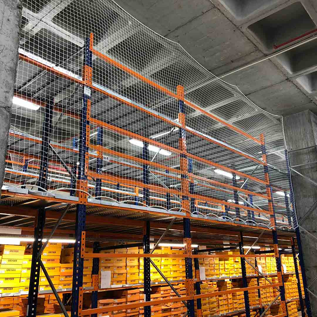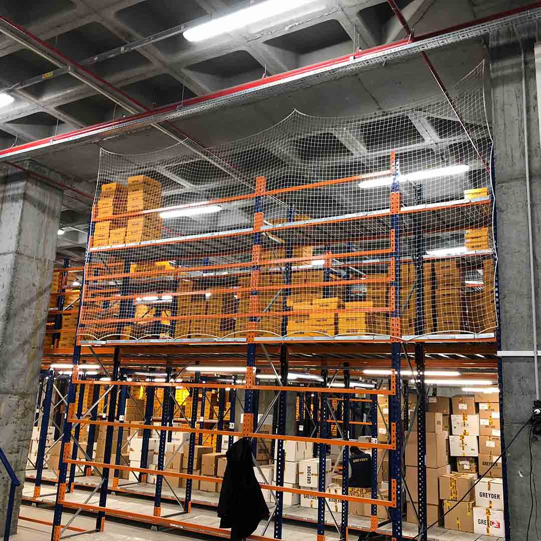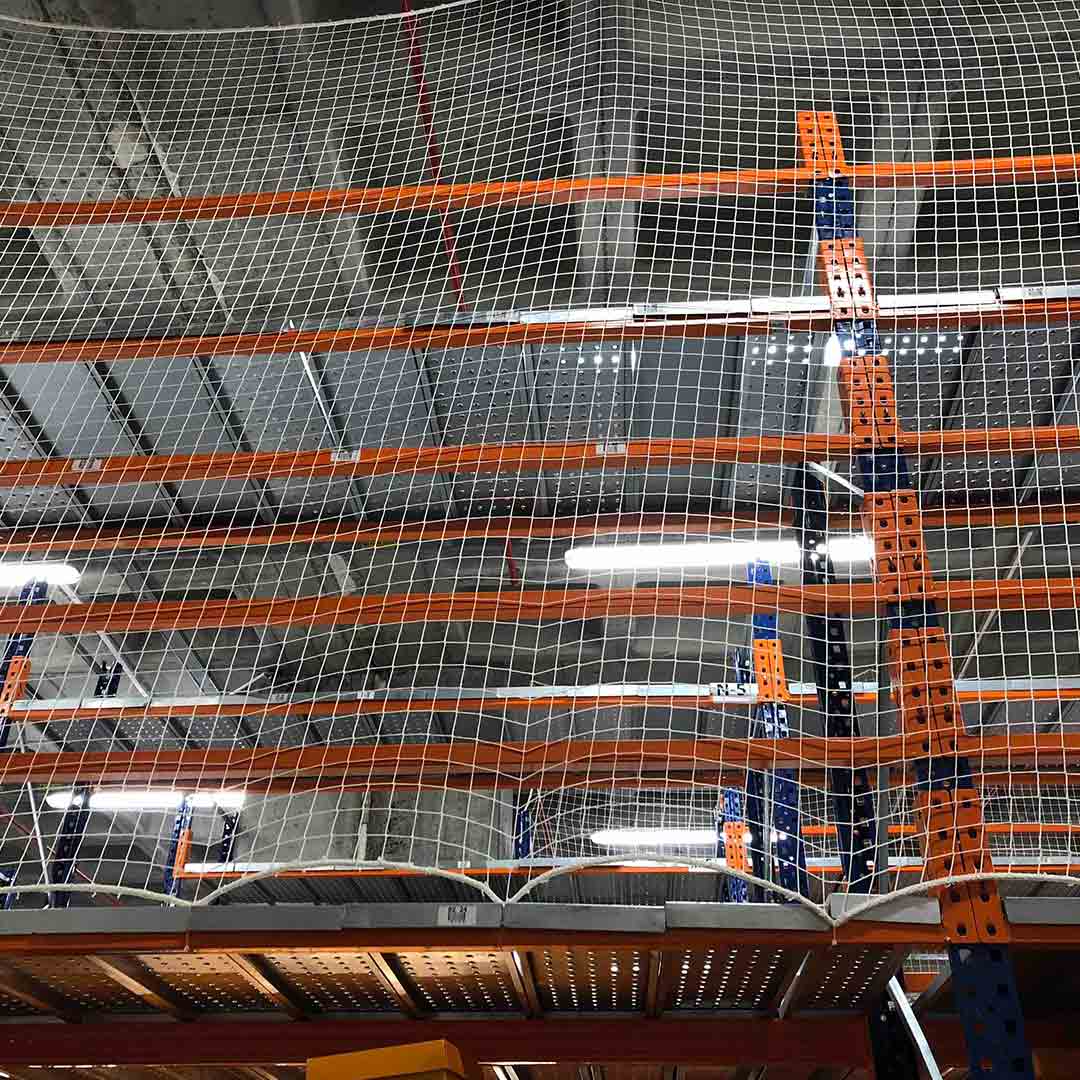 Raf güvenlik filesi, yüksek depo raflarından düşebilecek ürünlerin kazalara yol açmaması için kullanılan bir güvenlik filesi uygulamasıdır.